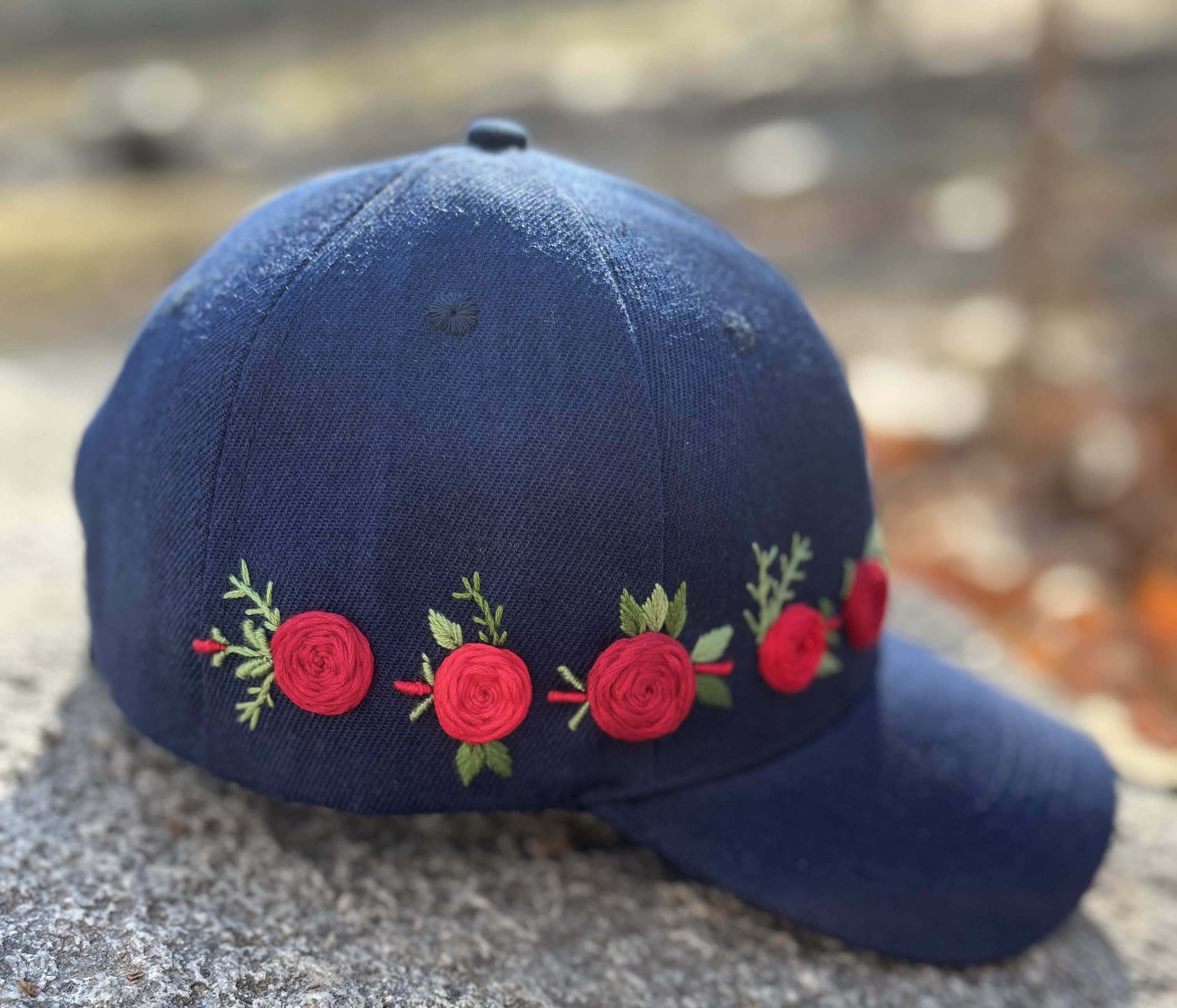 کلاه بیسبالی سورمه ای با گلدوزی دستی گل های رز قرمز_ ترکیب شیک هنر و طبیعت۷۲۳٬۵۰۰ تومان
