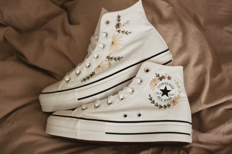 کفش آل استار یا کانورس سفید گلدوزی شده با طرح گلهای ظریف_طراحی خاص و منحصربه فرد۳٬۹۲۰٬۰۰۰ تومان