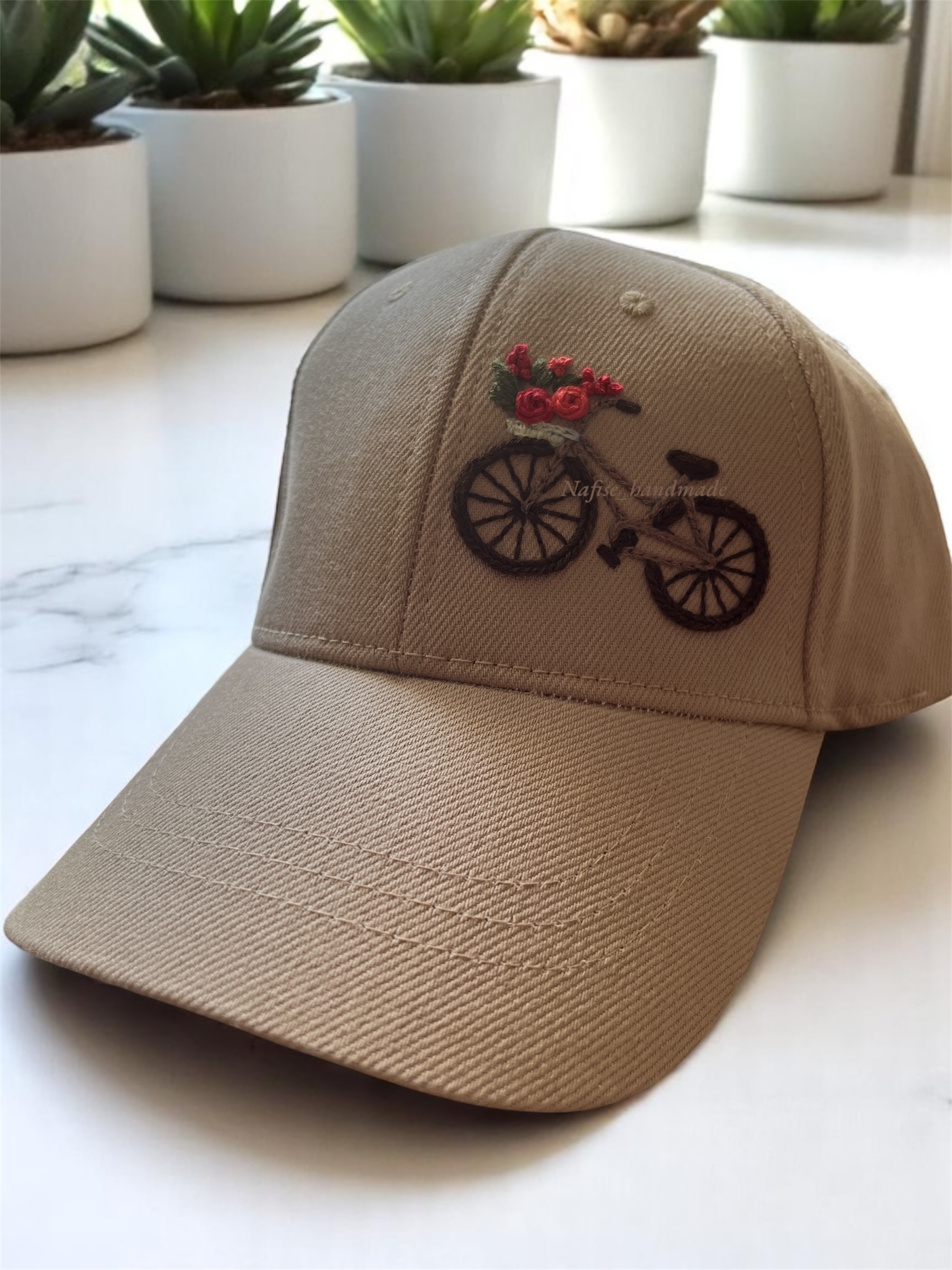 کلاه لبه دار دست دوز دوچرخه و گل های بهاری_ سبک مینیمال و طبیعت دوستی۷۳۵٬۵۰۰ تومان