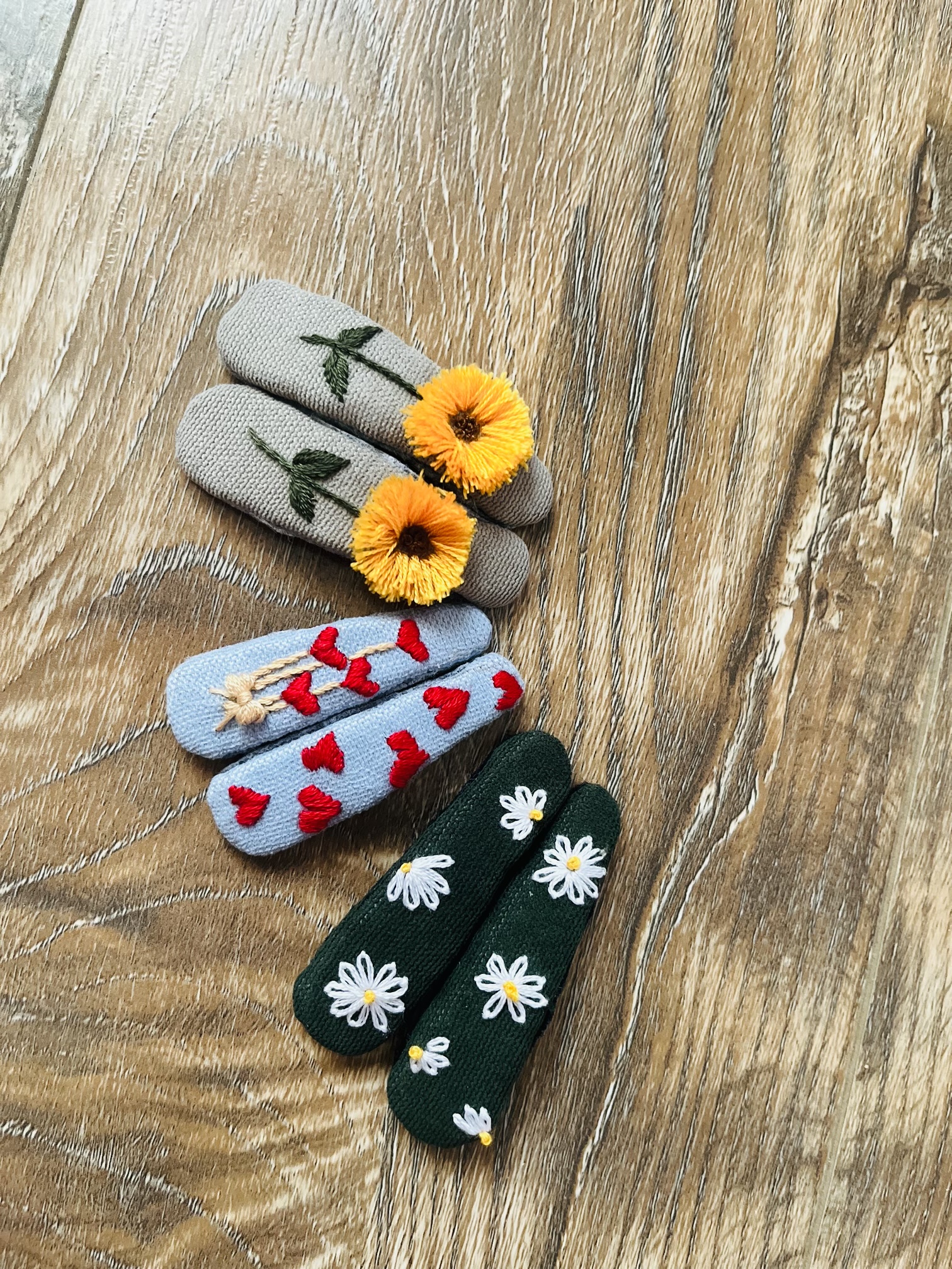 گیره تق تقی گلدوزی شده طرح بابونه آفتابگردان پاپیون۳۲۰٬۰۰۰ تومان