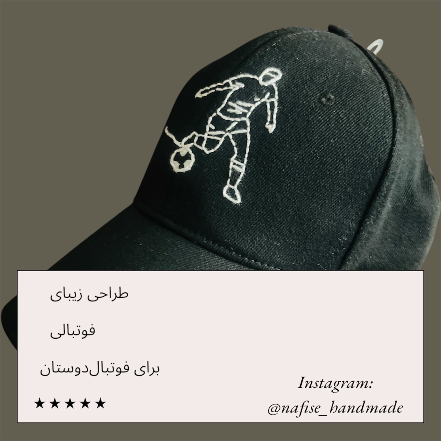 نقاط قوت: طراحی خاص و اسپرت، مناسب برای علاقه مندان به فوتبال کیفیت بالای پارچه و دوخت کلاه گلدوزی دستی ظریف و دقیق که حس خاص بودن را منتقل می کند. مناسب برای هدیه به نوجوانان، جوانان، و حتی ورزشکاران نکته قابل توجه: قابل سفارش در رنگ های سفید، خاکستری، مشکی و سورمه ای