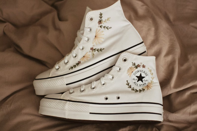 کفش آل استار یا کانورس سفید گلدوزی شده با طرح گلهای ظریف_طراحی خاص و منحصربه فرد