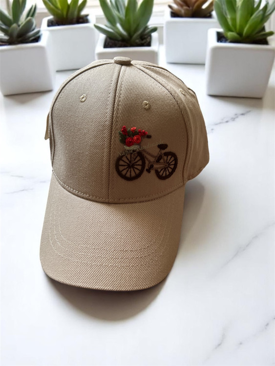 کلاه لبه دار دست دوز دوچرخه و گل های بهاری_ سبک مینیمال و طبیعت دوستی