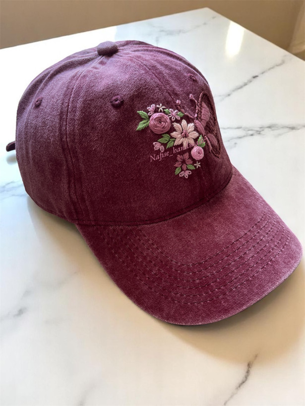 کلاه گلدوزی شده با طرح پروانه و گل| خاص، لطیف و زنانه