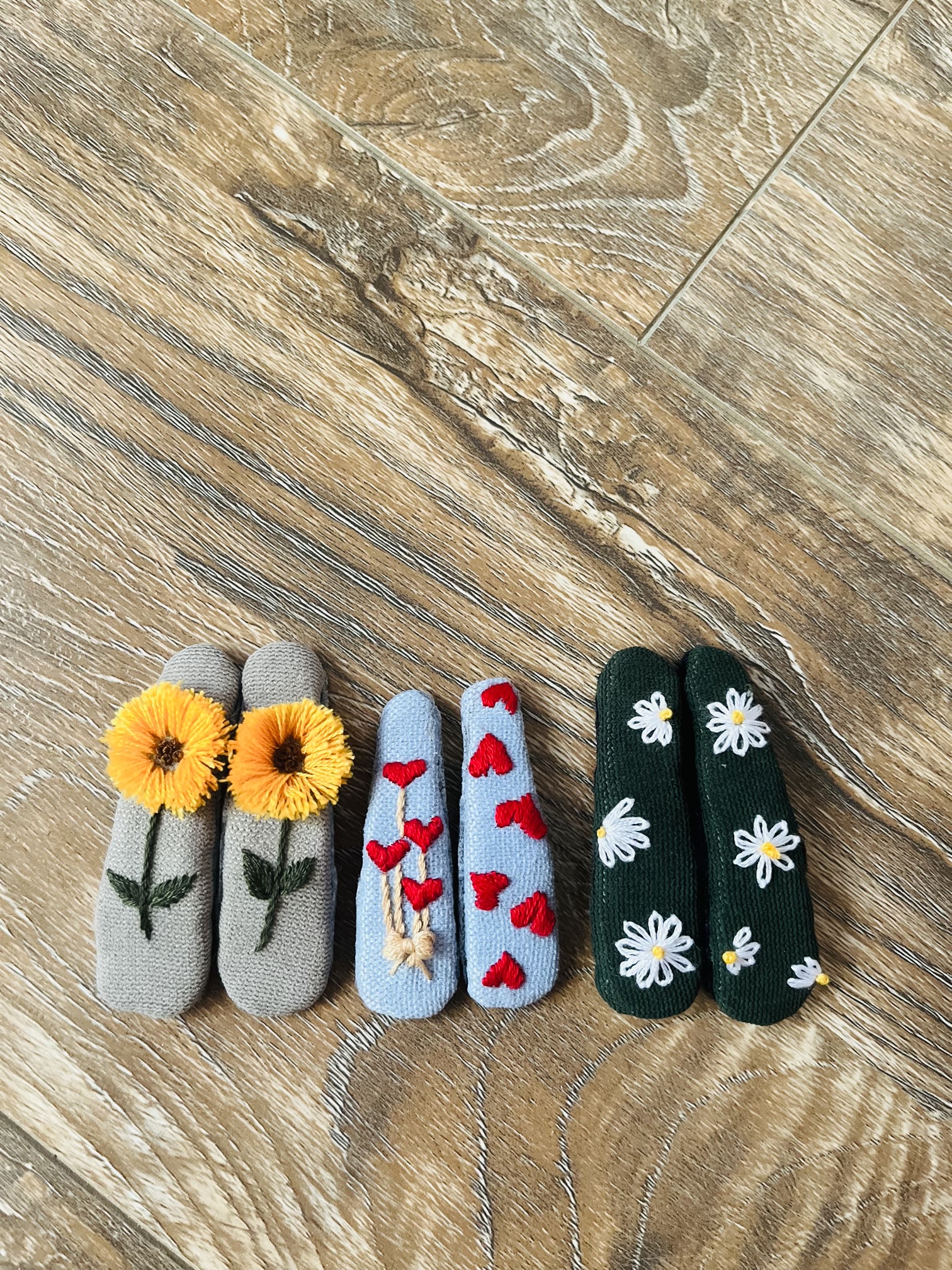 گیره تق تقی گلدوزی شده طرح بابونه آفتابگردان پاپیون