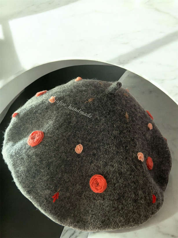 کلاه فرانسوی دست دوز طوسی با گلدوزی گل های رز