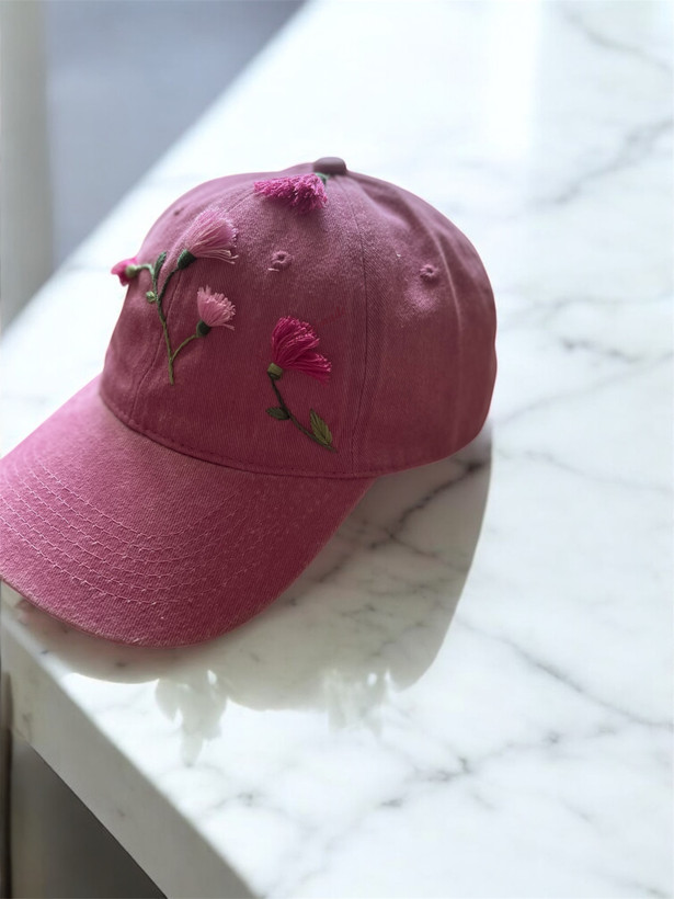 گلدوزی ها نه تنها جلوه ای ظریف و زنانه دارند، بلکه بخاطر برجستگی نخ ها، حس لمس پذیر و لوکسی به کلاه داده اند.