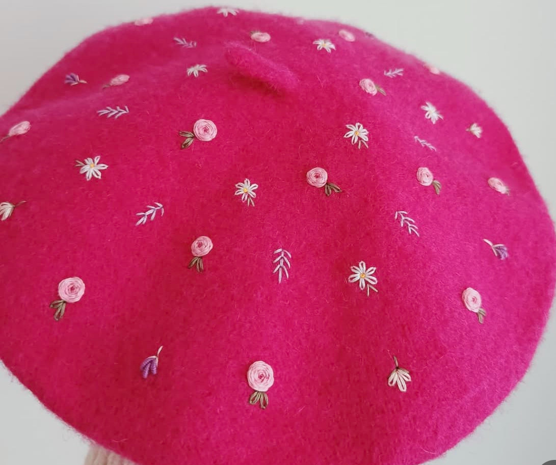 کلاه برت دستدوز زنانه با گلدوزی گلهای رز غنچه۸۲۰٬۰۰۰ تومان