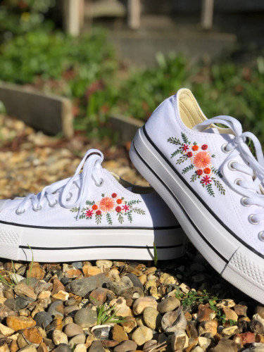کفش آل استار یا کانورس سفید گلدوزی شده با طرح گلهای ظریف_طراحی خاص و منحصربه فرد۳٬۹۲۰٬۰۰۰ تومان